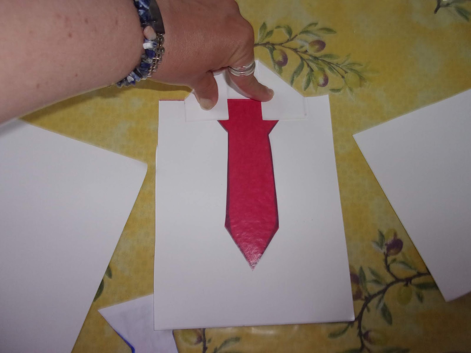 Dans la feuille moins épaisse, découper une cravate et la coller sur la feuille épaisse